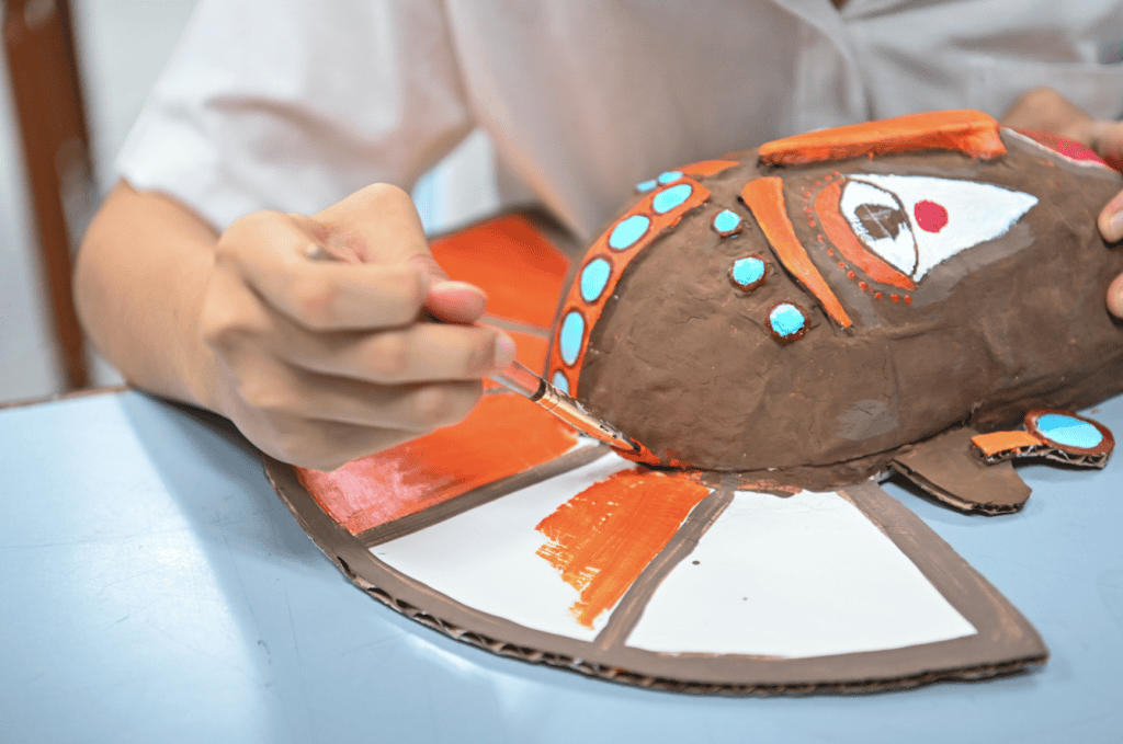In Kindergarten, students are introduced to the basic elements of art—line, shape, color, and texture—through guided activities and open-ended exploration. By Grade 1, they begin to develop observational skills and gain confidence in expressing themselves independently through both two- and three-dimensional projects. In Grade 2, students explore new media and techniques, with projects inspired by artists like Hundertwasser, encouraging them to experiment and express emotions through their artwork.