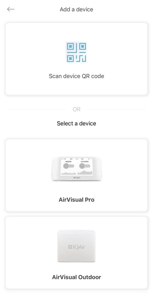 Select the Air Visual Pro device.